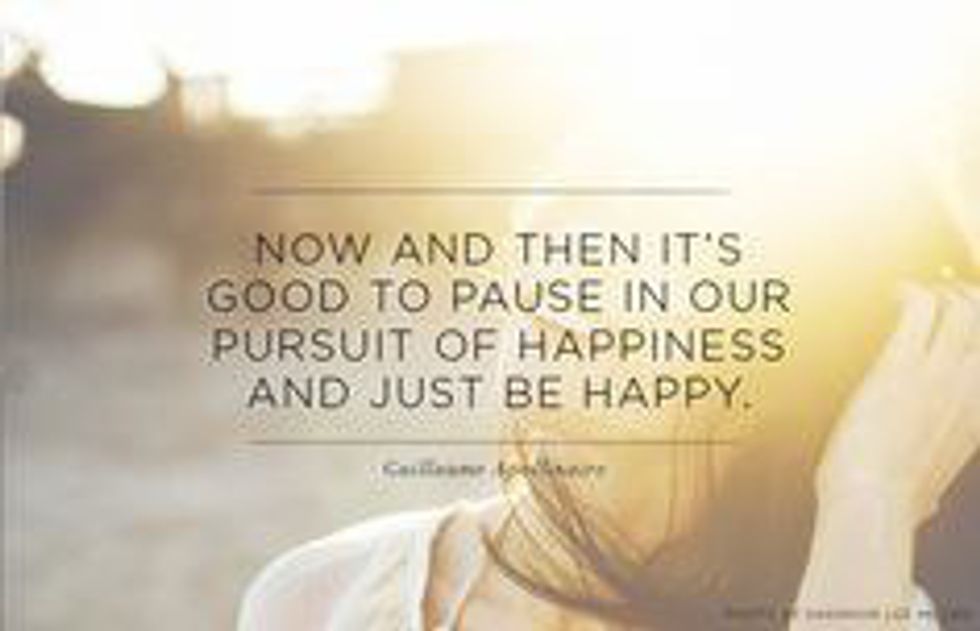 - "Now and then it's good to pause in our pursuit of happiness and just be happy." --Guillaume Apollinaire