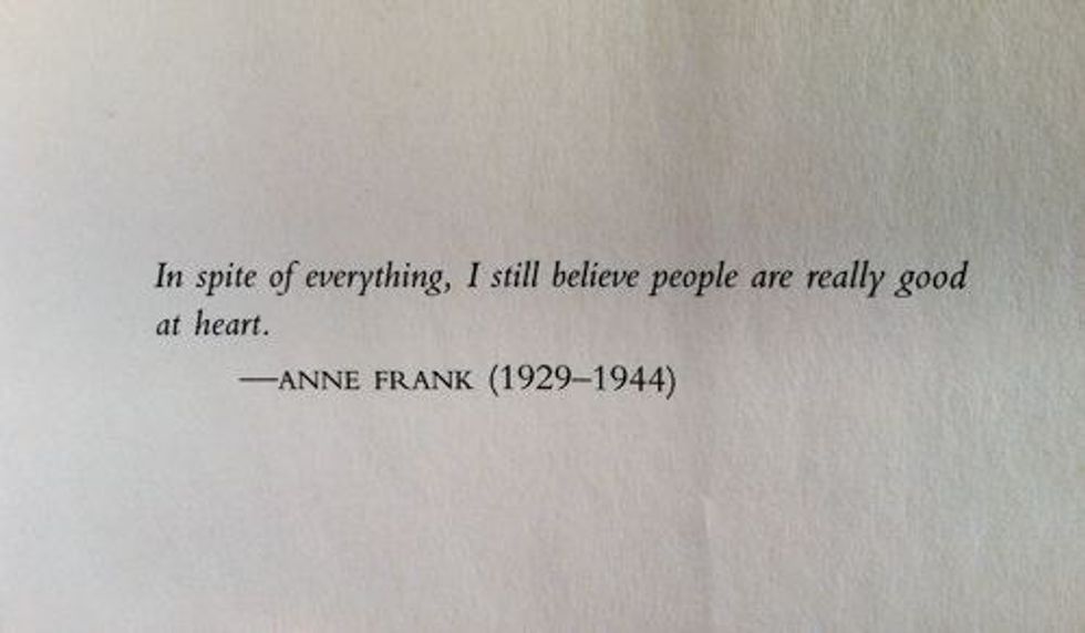 - "In spite of everything, I still believe people are really good at heart." --Anne Frank