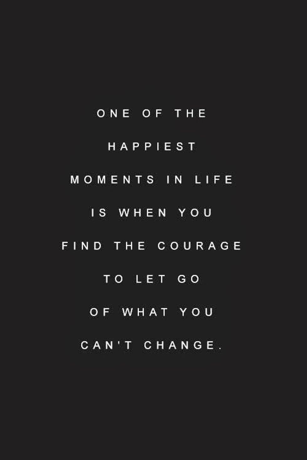 - "One of the happiest moments in life is when you find the courage to let go of what you can't change." --Unknown