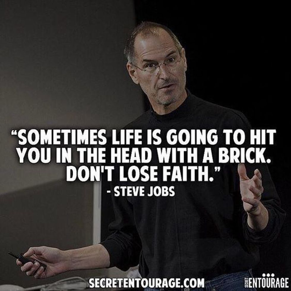 As Jobs said, don't lose faith no matter what life throws your way. Just remember that you went to college, you went to class, you made the grades, you got that degree, YOU are the one that graduated. You made it this far, don't let life get you down.
