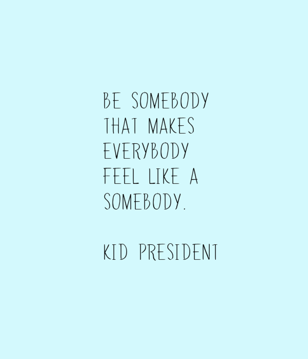 If you haven't watched Kid President before, do so NOW. It's incredible how such a young person can have such a wise mind, and this quote expresses that- we all have the power to change the life of others, for they will never forget how you make them feel.