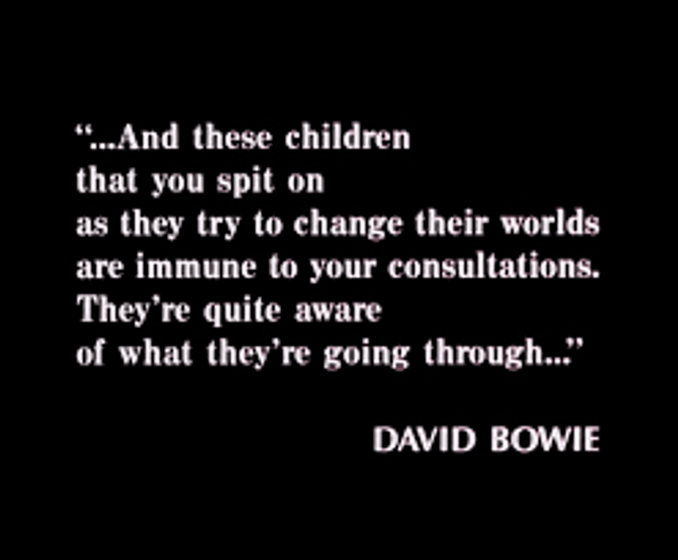 4. "...And these children that you spit on... They're quite aware of what they're going through...." -David Bowie, "Changes"