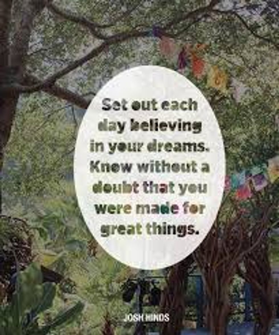 6. "Set out each day believing your dreams. Know without a doubt that you were made for great things." Josh Hinds