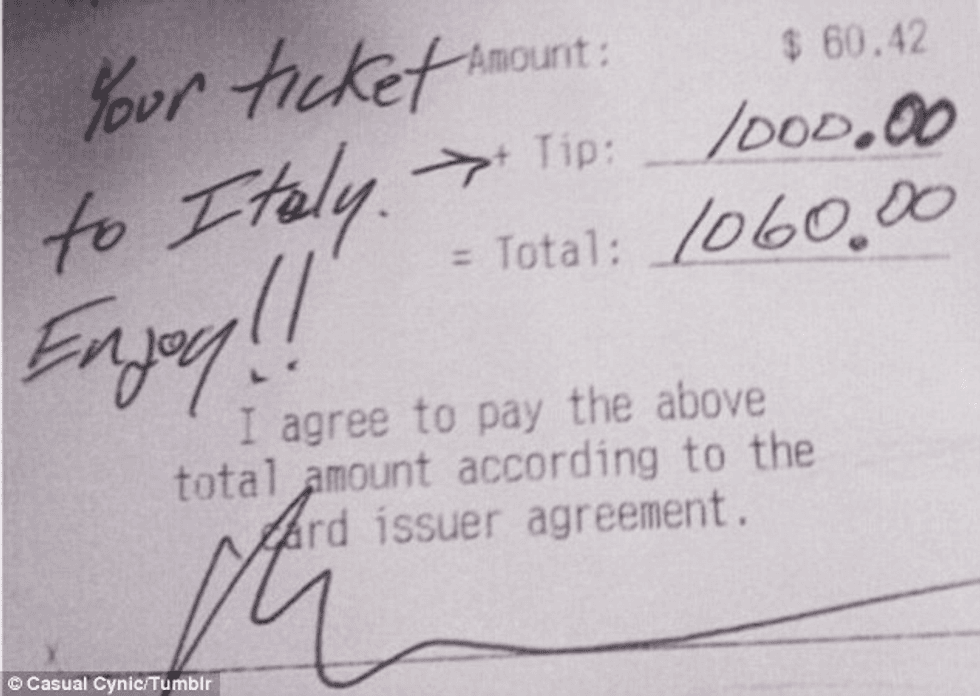 It doesn’t have to be this extreme - this is pretty generous! But for those that can financially do so, the server will be pleasantly surprised and you can even include a nice note along with the tip.