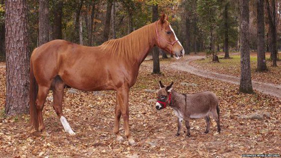 At a minuscule 25.29 inches, Knee-Hi the miniature donkey holds the Guiness World Record for shortest donkey. Not only is Knee-Hi quite short, but also incredibly cute.
