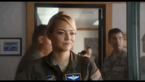 1. Emma Stone's character, Allison Ng, is first introduced as a badass fighter pilot. ![]()