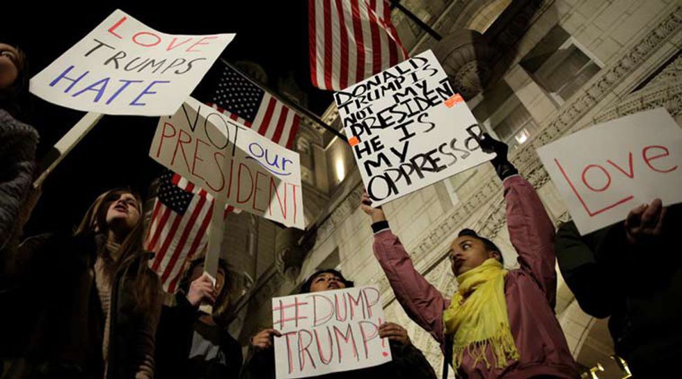 It has been a difficult few days since Trump's election, but if there is one thing I have learned from the responses I've received, it is that the people of America still feel something. Despite the terrible message it sends to have a president-elect as hateful and crude as Donald Trump, we still have it in our power to come together and make a change. And even if you can't protest or attend rallies or speak out against injustices, you can be that change by loving those around you, something Trump and his supporters have failed miserably at time and time again. In addition to that, make sure that you or anyone else who needs it seeks help to get through what will surely be a rough period of time. Stay strong, stay safe, and stay hopeful because love always trumps hate.