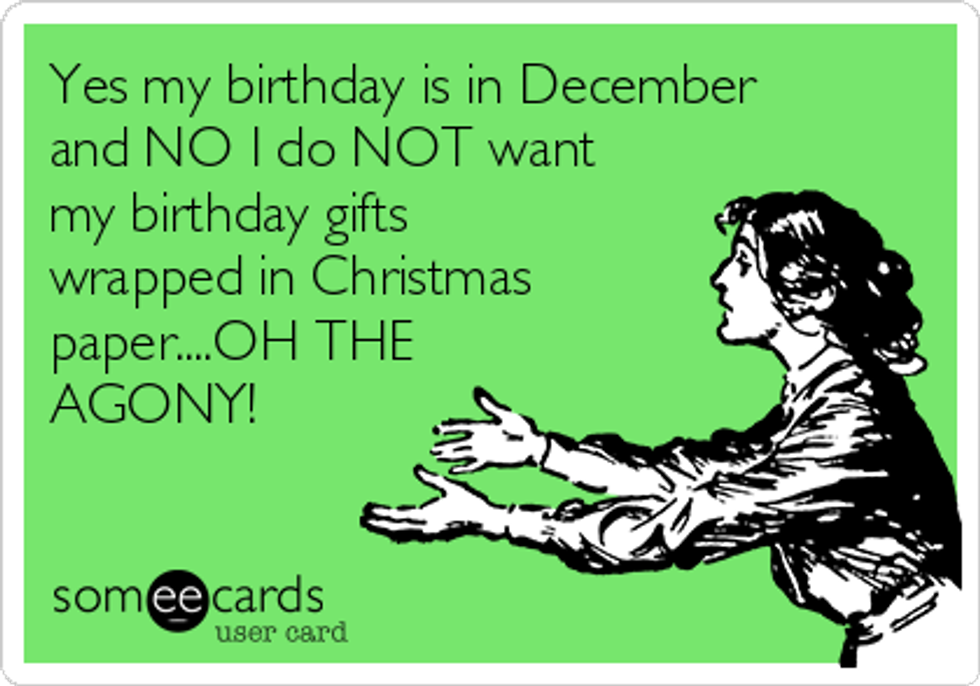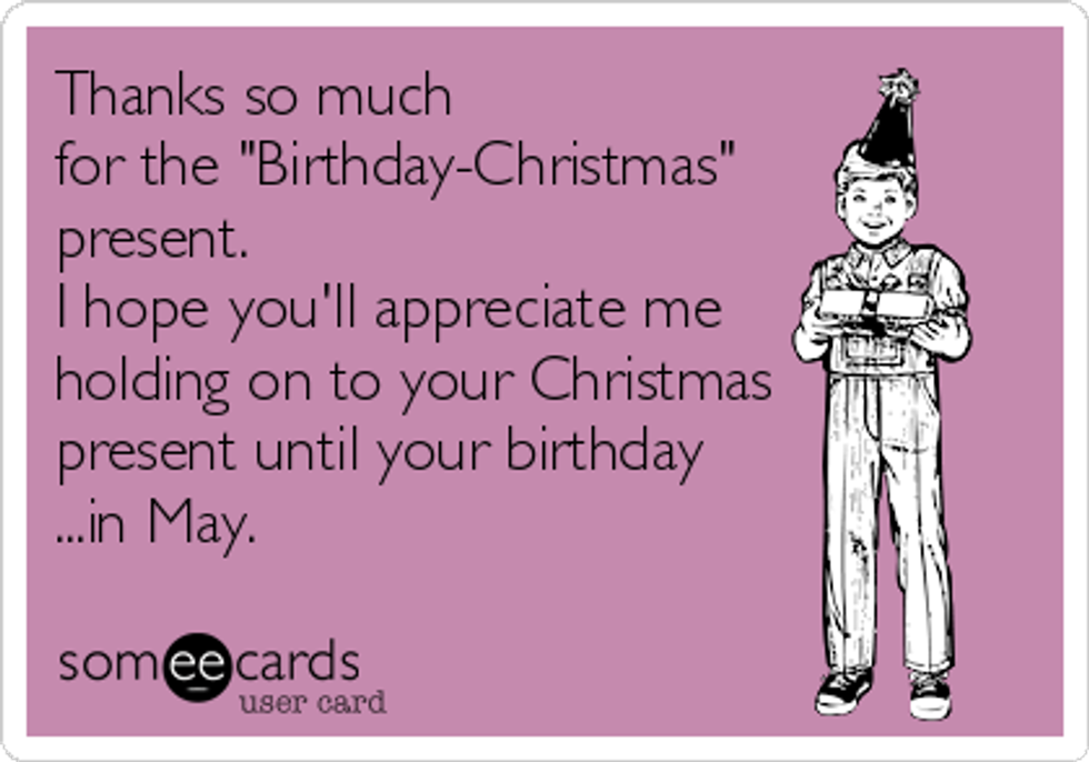 This might be one of the biggest pet peeves of any person with a December birthday. I think people forget that this is the only time of year we get a gift. By giving us a combo gift, you’re cheating us out of one special day that anyone with a non-December birthday gets to enjoy. Most family members understand this, but there’s always those long lost friends or cousins who send the dreed combo gift.