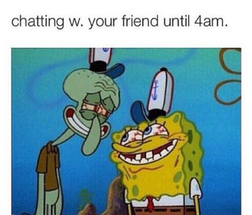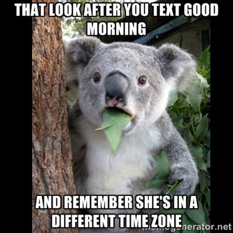 You don't know what you've got 'til it's gone, especially when it comes to time. Being 3,000+ miles away is hard, but having your best friend live seven hours ahead of you is quite possibly one of the most difficult things when it comes to a friendship. You are no longer both in sync, and your everyday activities, which you try to continue, are so off. It has now come to waking up at ungodly hours just to text your friend to have a good day while she tells you to have a good night, and every emotional moment you may have can never be shared because it's either too early or too late. But no matter what, staying up until 4 a.m. on a weeknight is worth it, just to make sure she's okay.