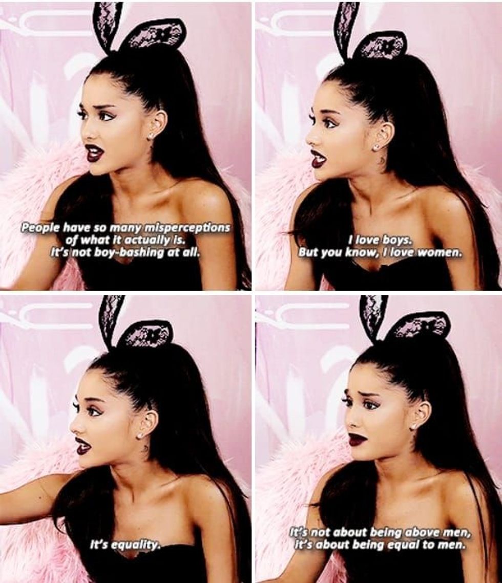 Her beautiful soul is something that any girl can look up to. Ariana is strong, confident, and someone who doesn't let the haters get her down. She isn't afraid to speak her mind, and despite being called a diva sometimes, all she is is a girl in charge. She speaks out for equality and accepts who she is.