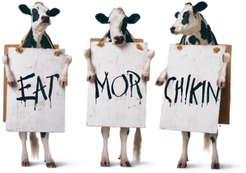 The Chick-fil-a Cows are always up to some crazy shenanigans. I know it's silly but I find them super amusing. Plus they are just so adorable. I applaud whoever came up with this brilliant and ironic advertising method.