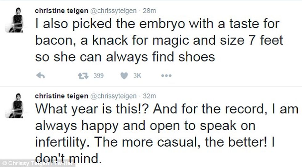 Some people forget that people who want kids can't always have them the natural way. As if it is some crime to pursue other alternatives to have a child after an extended period of trying to conceive naturally hasn't worked. Teigen has also criticized those who kept asking her when she and John were going to have children.