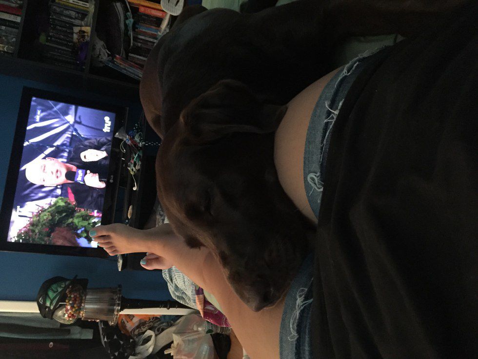 When it comes to sharing a bed with Hershey, there is no concept of personal space. She loves to be lined up with your body and to rest her head on you.