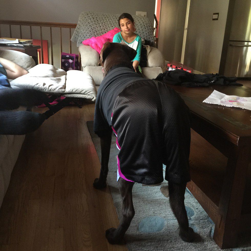 As soon as my mom gets home from food shopping Hershey sticks her head in the bags looking for something my mom got her. And smart enough she always finds it. But sometimes she thinks it would be a good idea to go through my moms purse to see what she can find. Or go into my room and steal my socks.