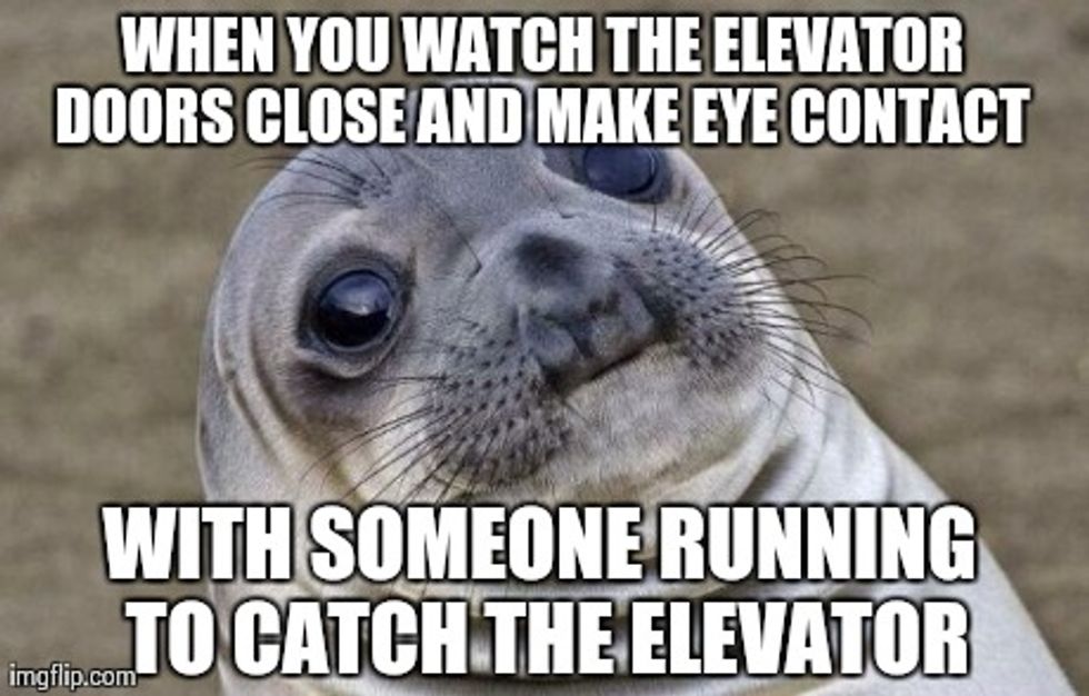 5. Starting a conversation with someone on the first floor, but feeling it slowly fade to where there is the "post-conversation awkward silence" that you have to deal with until you reach your floor.
