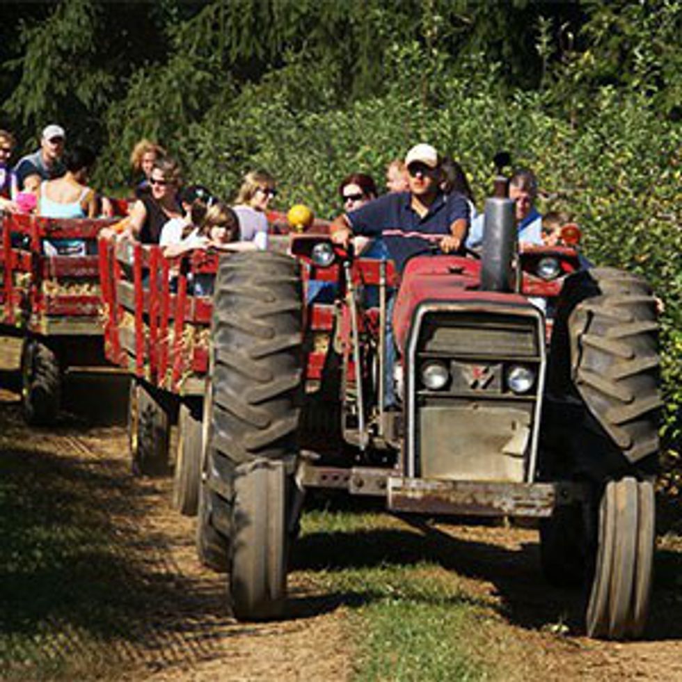 Ride around the farm during the day, or wait until it gets dark to go on a haunted hayride, and maybe even get into a hay fight!