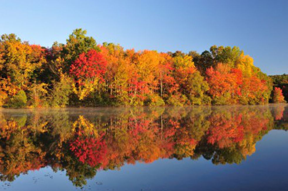 Shout out to God or whatever higher power you believe in for taking some art classes and showing the beauty of color! From the spectrum of warm colors of reds, orange, and yellows, nature’s natural beauty is enhanced and wonderfully contrasted with the blues of the sky and water and remaining green leaves. Like whoa, Instagram and VSCO filters got nothing on this!