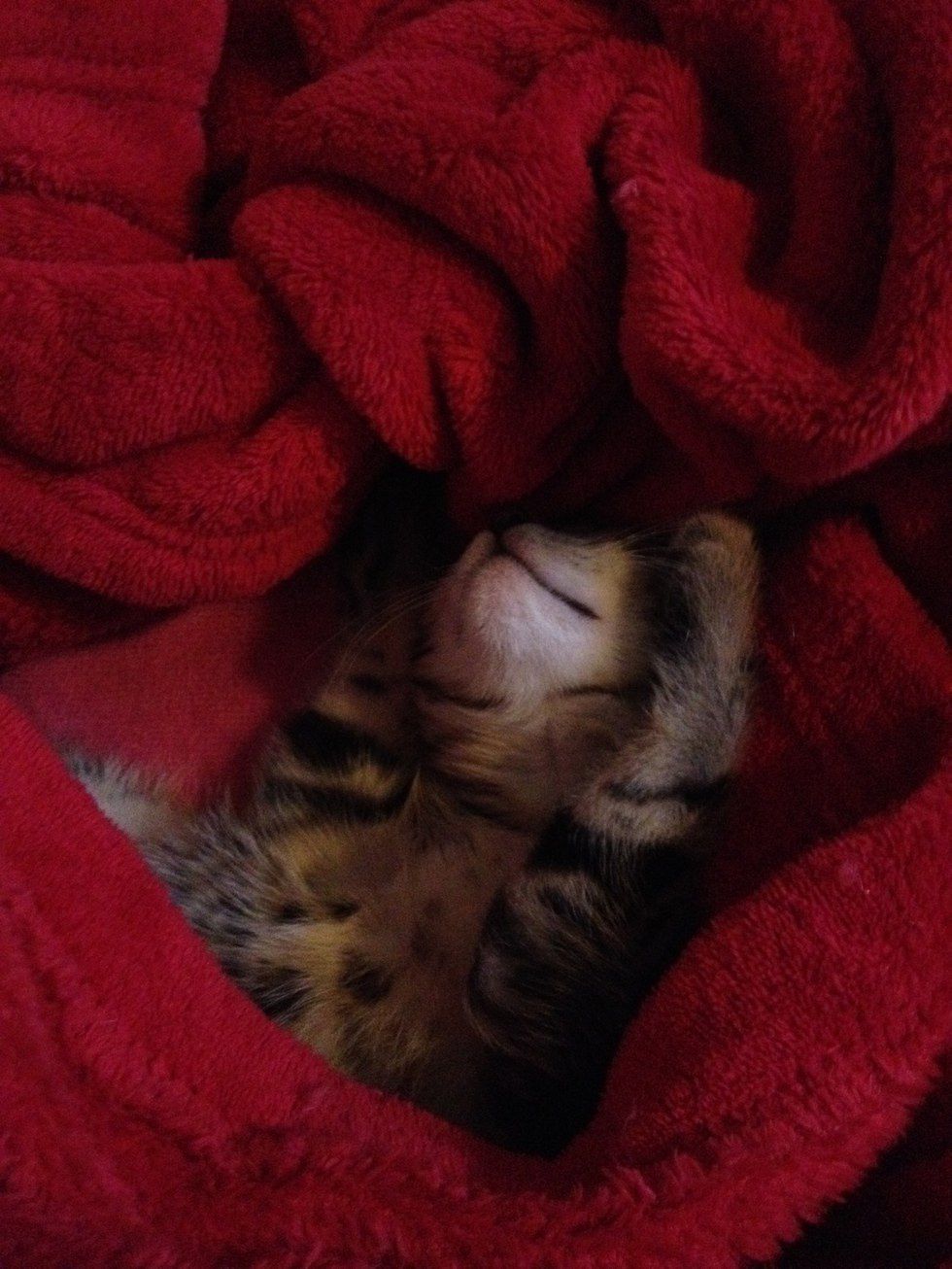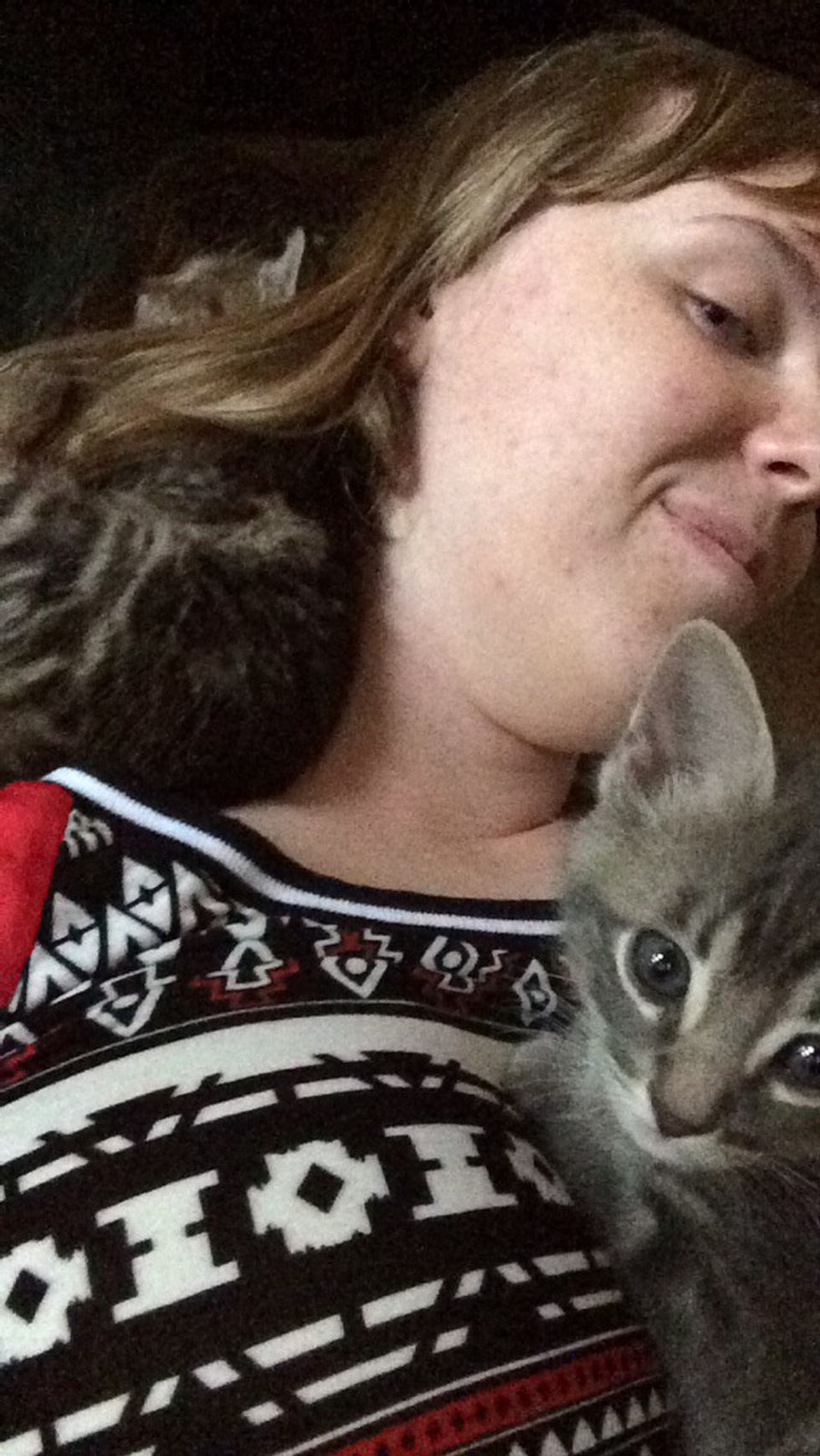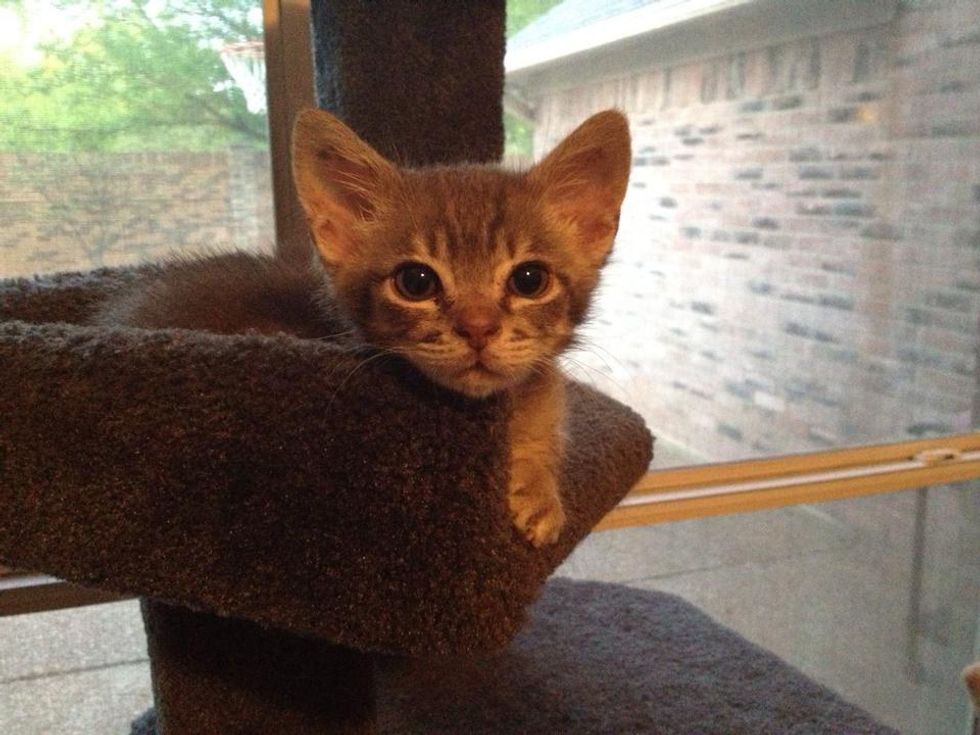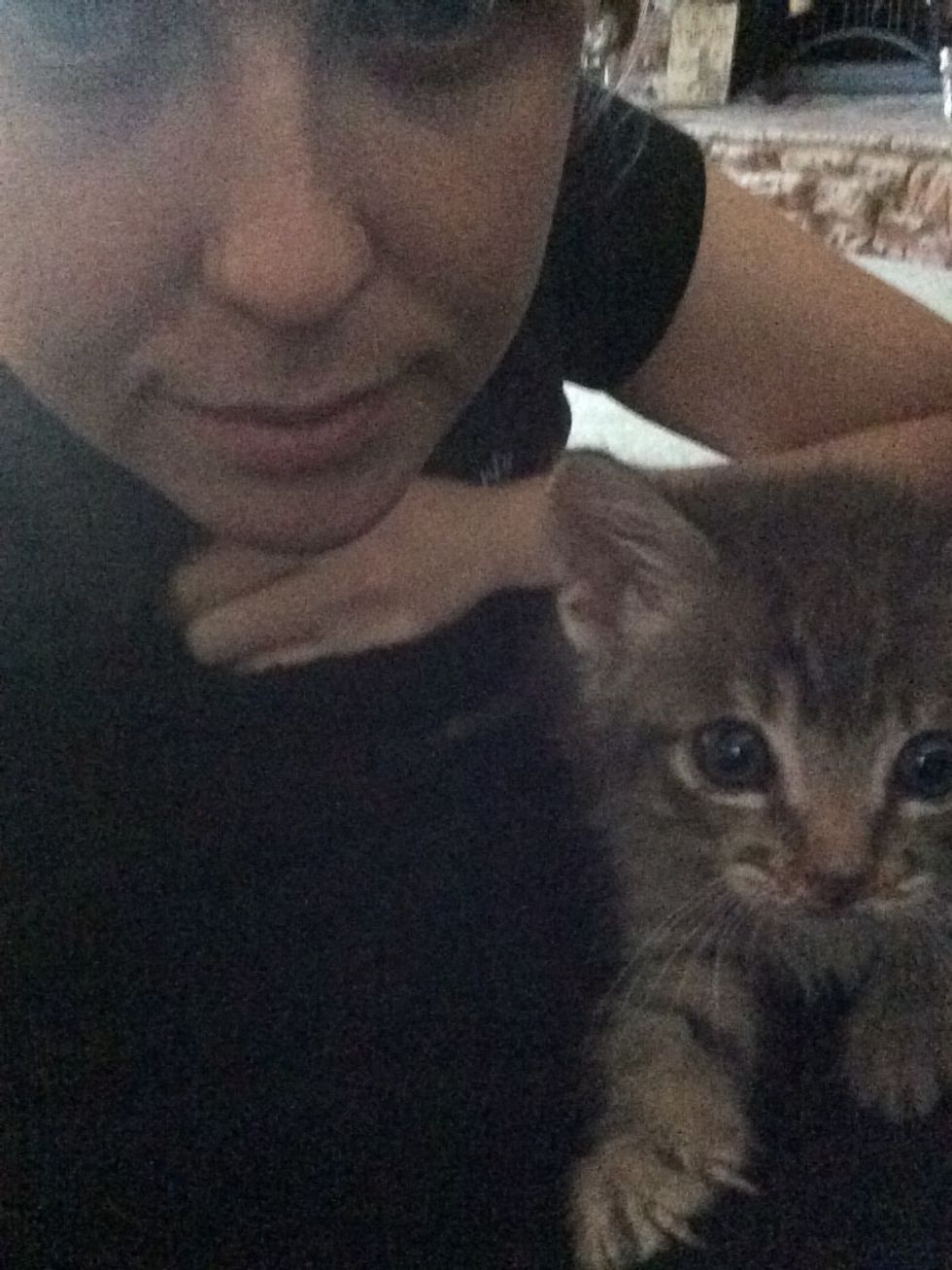 My mother and I fostered a pregnant cat from the Denton Shelter. We fell in love with one in particular and decided that this little squirt was a kitten we just had to keep for ourselves. This little rascal had the time of his life learning to crawl, open his eyes, and eventually bite (ouch!) his way around our house. My family quickly decided we would keep our first successful foster and now he lives happily in my apartment with me!