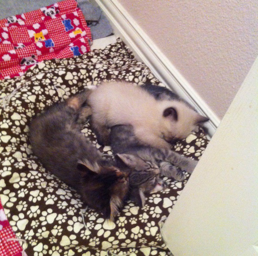 Kittens are usually kept in a cage with their litter or paired with other healthy kittens. So think about it, if three volunteers foster three pairs of kittens, you could potentially open up two or three other cages for the shelter to use for adult kitties!