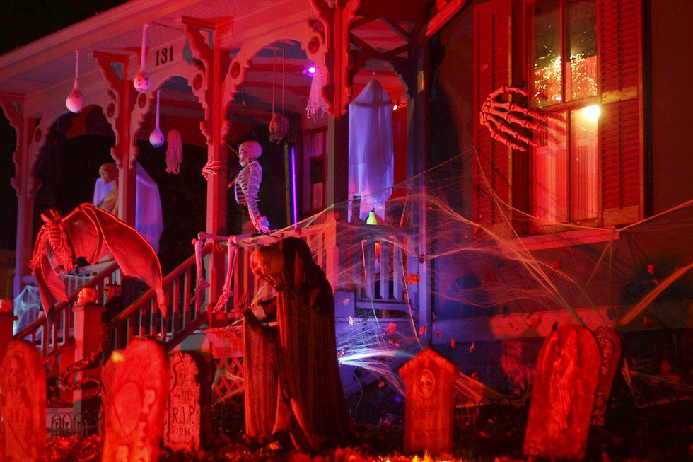 The creepier and scarier it looks, the better. Throw cobwebs, broomsticks and skulls up until it looks like the set of the “The Addams Family”.