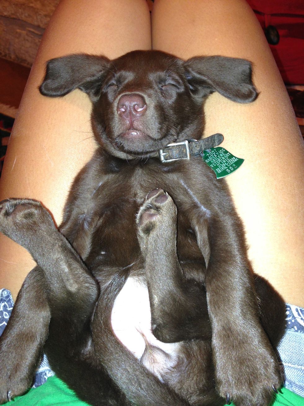 2. Cuddle buddy.Ā If you don't have a significant other (or even if you do), pups make the BEST cuddle buddies.Ā They just want to snuggle up close and take a nap. They're also the best listeners... as long as you keep scratching their belly.