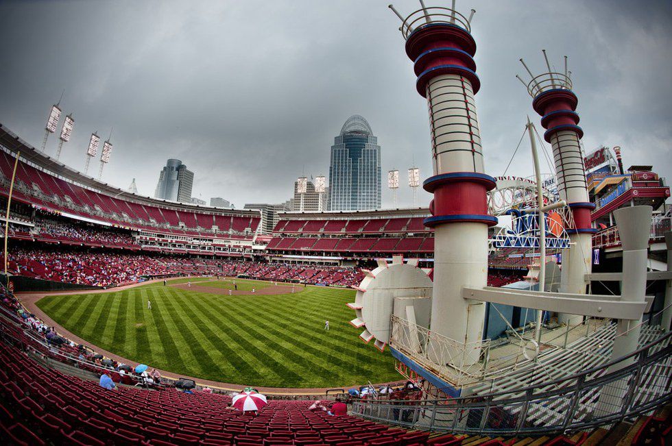 Opening day... I like to believe this is what heaven will be like. The smell of corndogs, sweat, and skyline coneys, a giant stick of cotton candy as you cheer on the greatest baseball team in the world. Your best memories as a kid consisted of your dad letting you skip school for opening day at the Reds Stadium. No school, and baseball?! Three cheers for the Reds.