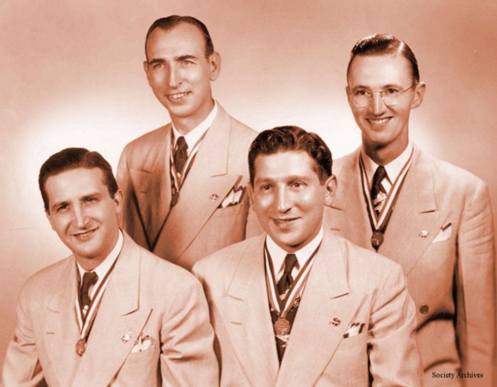 1. They are trendy AND original. After the Elvis fad, the Beatles kept early rock 'n' roll and pop music alive, and a lot of their early music was inspired by Elvis’ music: “Every time I felt low I just put on an Elvis record and I felt great” (Paul McCartney). Old people thought rock 'n' roll was just a phase that would soon be over, but the Beatles told them to think again. It wasn’t long before every boy in the western world was wearing leather jackets, tight jeans, and hair oil. I’m not saying there is anything wrong with Frank Sinatra or the Four Freshmen, but before Elvis and other great original rock (and even gospel) artists like Little Richard and Chuck Berry and Sister Rosetta Tharpe, pop music groups looked a lot like this: