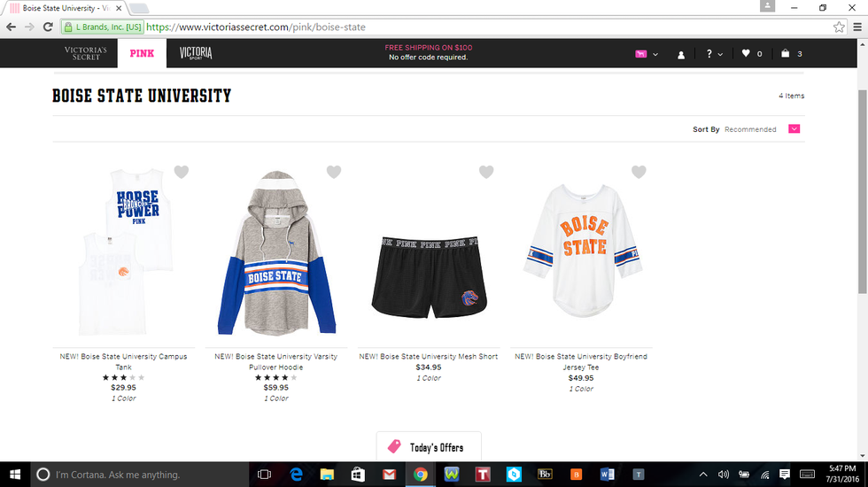 Hey girls, Victoria's Secret just released a new line of Bronco gear so go check it out: https://www.victoriassecret.com/pink/boise-state