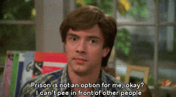 Eric is realistic about life. In the gif above, he knows that he shouldn't go to prison because he can't pee in front of people. At least he can admit why he wouldn't be able to do so. He is realistic like this throughout the show.