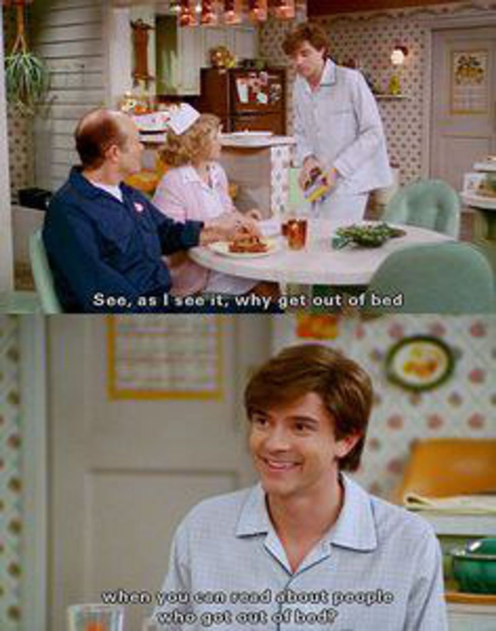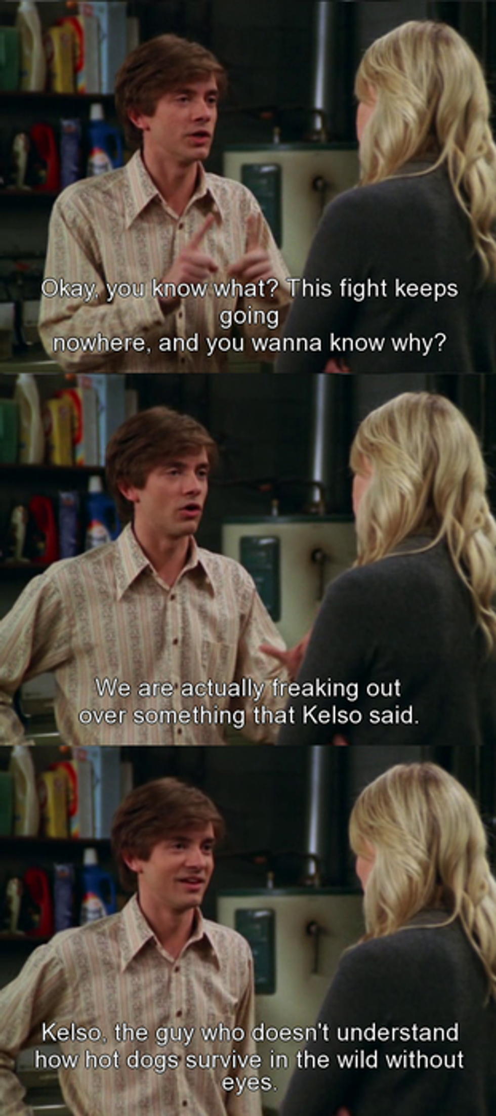 I am an extremely sassy person, and I really appreciate Eric's sassiness as well. Eric's sass helps define him as a character; Eric Forman would not be Eric Forman without his witty and sassy comebacks.