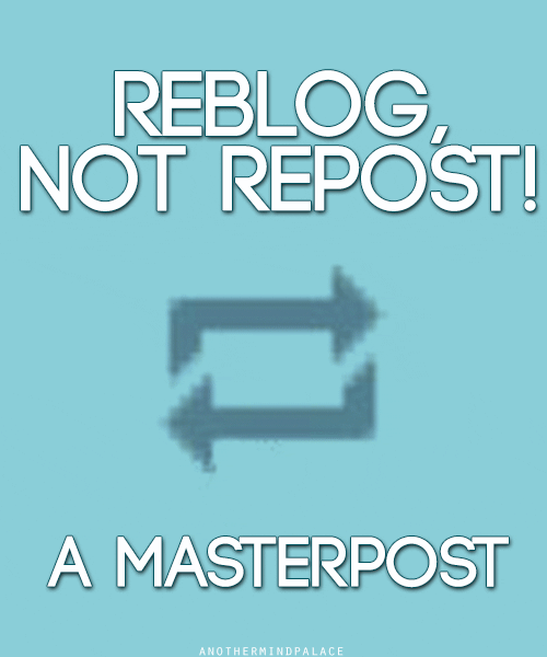 There is nothing wrong with reblogging things or even reposting them if you give the artist or writer credit!! Always make sure you do not take credit for other's work! And if you know who did it make sure to give them credit! Sometimes if you don’t know it even works to just post it and ask if anyone knows the creator. Never try and steal things that aren’t yours!
