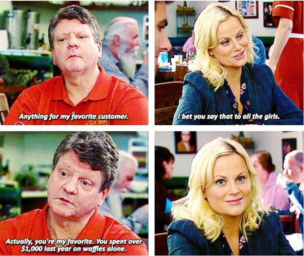 Not only does Leslie support JJās Diner with her waffle habit ā she even had JJās cater her wedding ā but she rallied a group of passionate locals to save it from the clutches of Dennis Feinstein. Everyone loves a local hero and that is exactly what Leslie is.