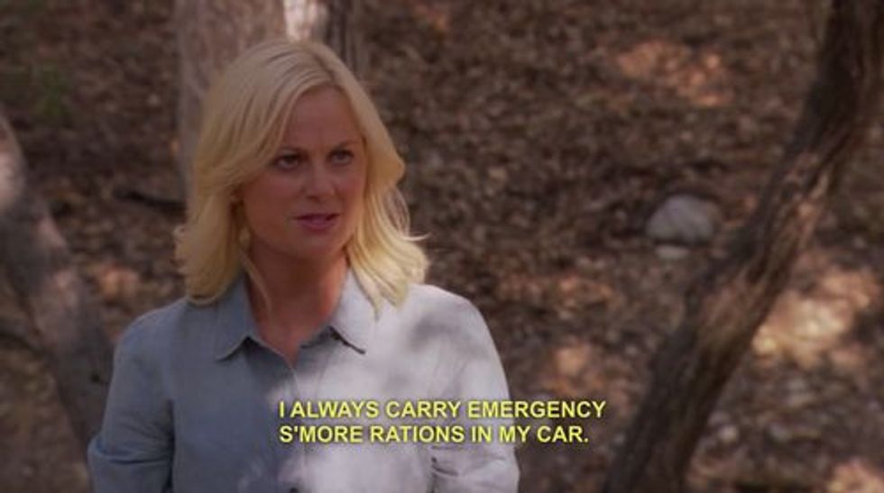 Have you ever gone on a camping trip, but left the sāmore supplies at home? Nothing is worse, right? Well, have no fear because Leslie has got you covered. Thanks to her large binders of strategies and her emergency sāmore rations, she is always prepared.