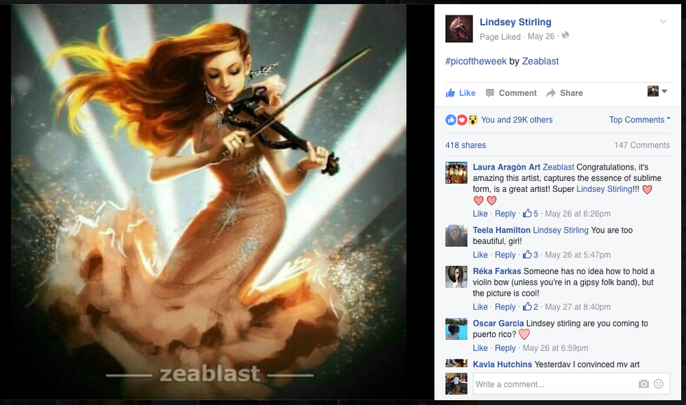 Lindsey is always thanking her fans for getting her to where she is. She constantly shares fanart on her Facebook page, and gives full credit to the artist every time. You can tell that she really cares about us, because she takes the time to share our talents right beside her own. You go, Lindsey. Keep inspiring people.