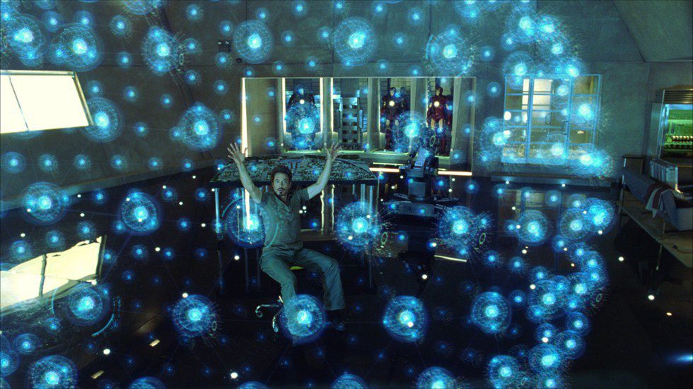I mean the reporter's phone got more technologically advanced just by being in Tony Starks's presence. (It goes from a flip phone to what looks like an iPhone.)