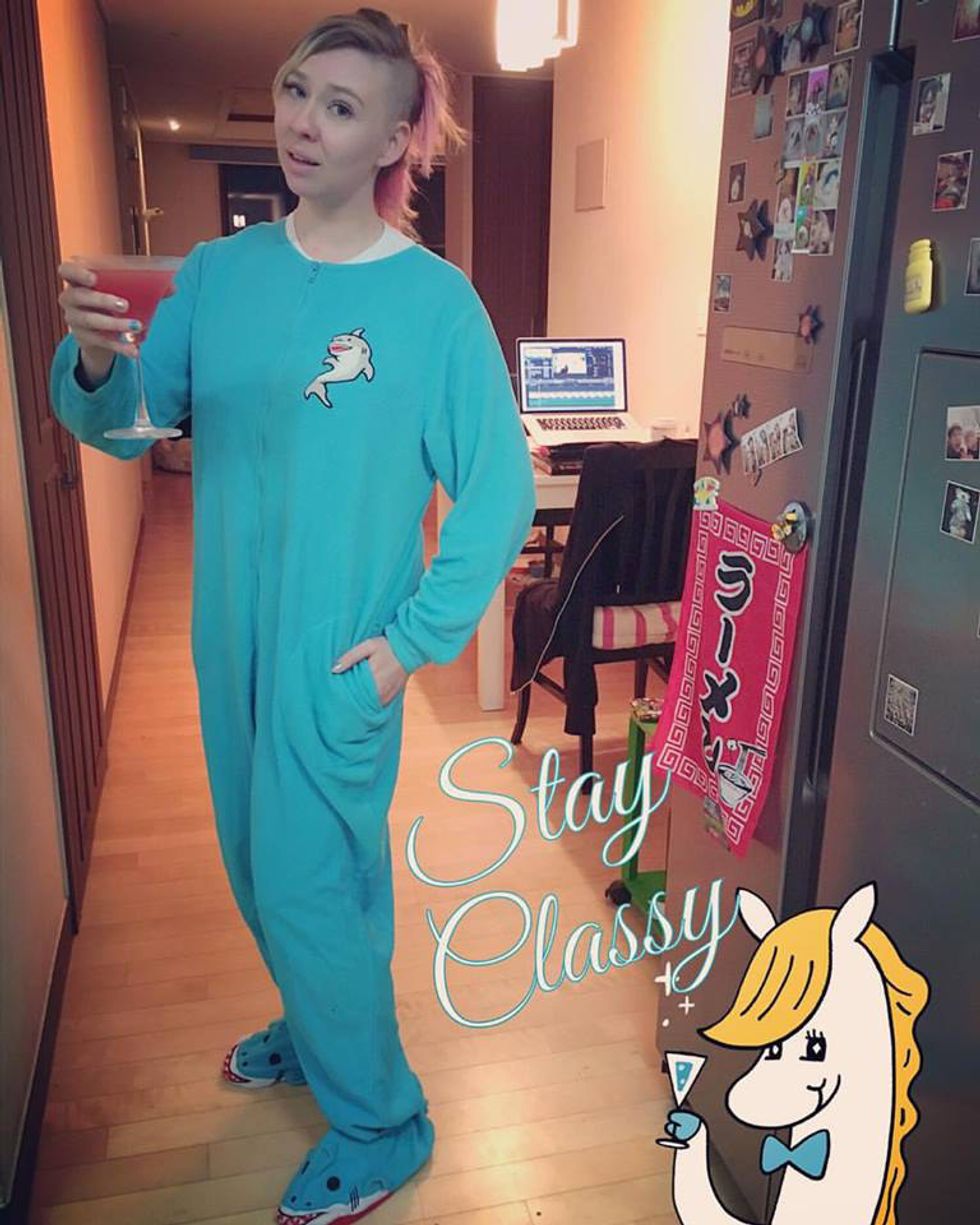 Martina has a bold variety of style that includes everything from accessorized Sailor Moon chopsticks to bright, beautifully pink hair to black overalls. It varies. Even her lime green jacket looks amazing with her confidence and coordination. Is there any outfit Martina can’t pull off? No. No, there is not.