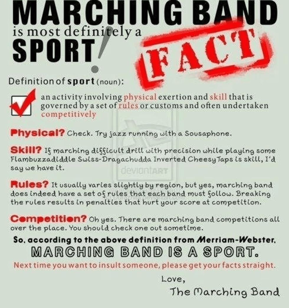 I am proud to say that I am a member of the marching band community. We are one, and we are strong.