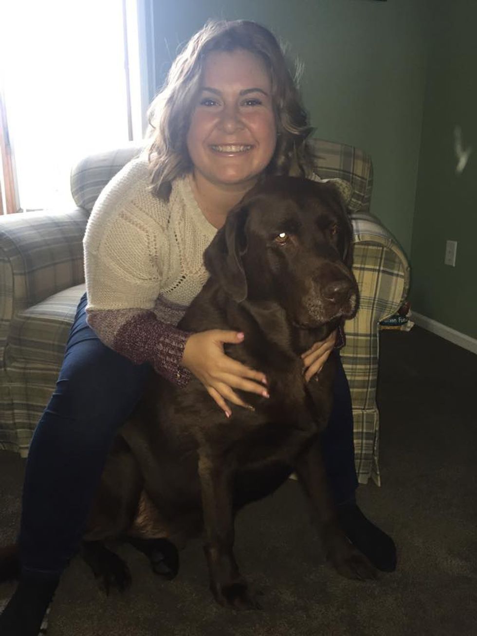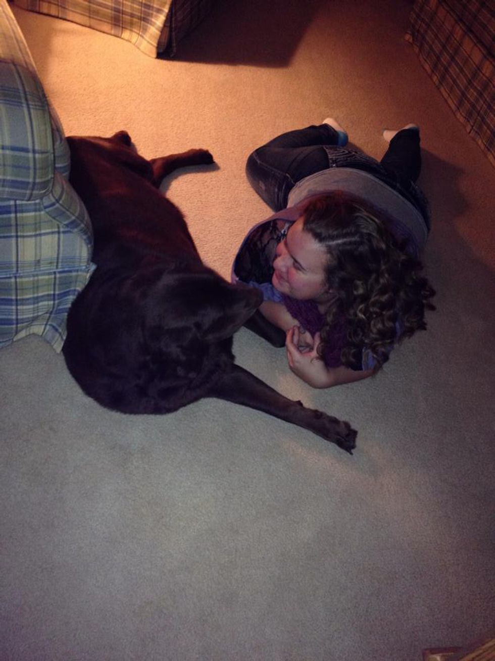 I have a chocolate lab, Hunter, who is my baby boy and has been since I got him. He came home around Christmas time and he was supposed to be my step-dad's dog. But from the second he walked in the door, I knew he was going to be my baby. He is now nearly nine years old and he's still my best friend.