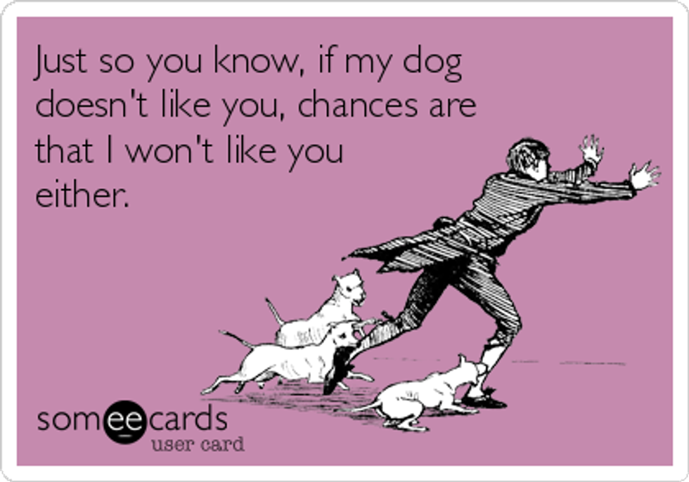 If my dog doesn't like you, chances are there's a good reason for it. There is something about a dog's judgement. Every single person my dog has been skeptical about has turned out to be no good and I have eliminated them from my life. But every person my dog has liked, has stuck around and turned out to be some of the most important people in my life. Humans have no way of knowing. You can try and guess but there just isn't the same intuition that dogs have. My boyfriend now had to pass my dog test and luckily he passed. I even told him if it went poorly, he's got some things to worry about.