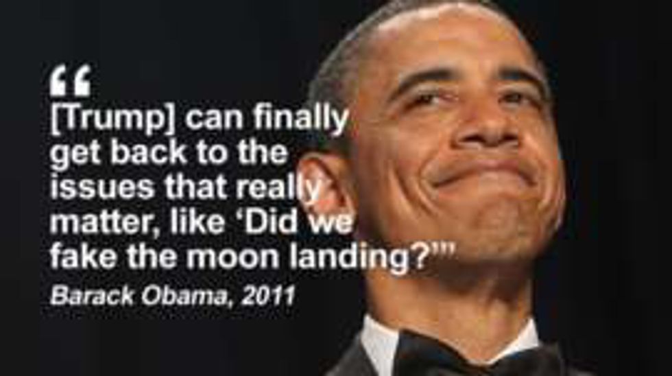 If I recall correctly, Trump brought it to attention that Obama may not have been born in the USA. Obama shot him down. Does it get any better than this?