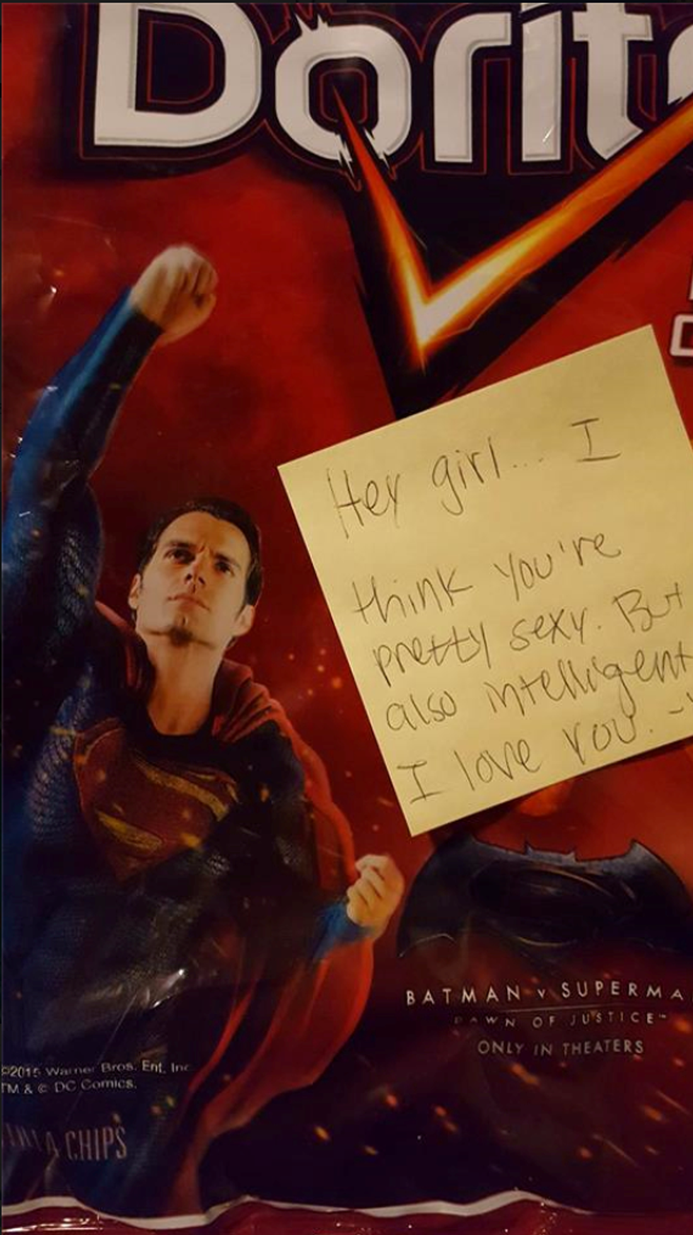 A few weeks ago I spied a bag in the local dinning store on campus with a familiar picture on it. One of my roommates bought it, and I made the request to keep the bag once she had finished its contents. What I got was something even better. My suitemates set this glorious bag of Doritos at my doorstep with a fake note from Henry himself.