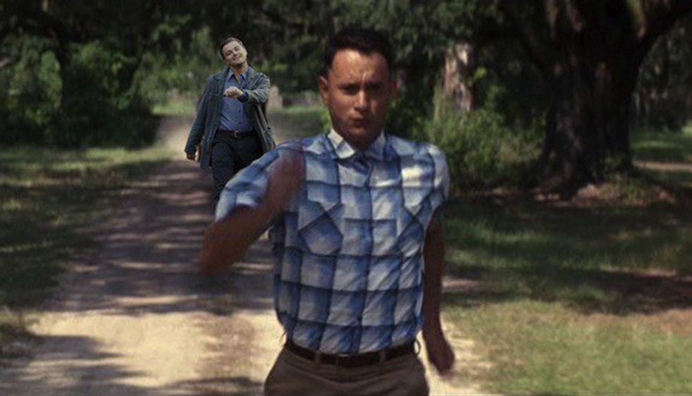 You put on whatever is nearest and run like Forrest Gump to your stop (and pass by someone walking like they've got the time of their life to get to their destination).