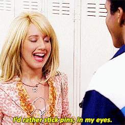 Oh whoops did I write the same quote from the gif? Maybe it's because Sharpay's height is only mentioned once... Ashley Tisdale is actually very short. Of course, the production teams put her in heels and used special camera angles the entire movie series to avoid showing it, because Lord forbid short people look short on screen, but they did gave Sharpay the single most relatable line for short girls everywhere.