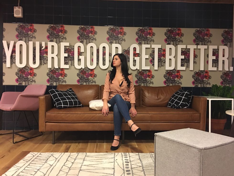PHOTO OF FOUNDER AT HER OFFICE SPACE.