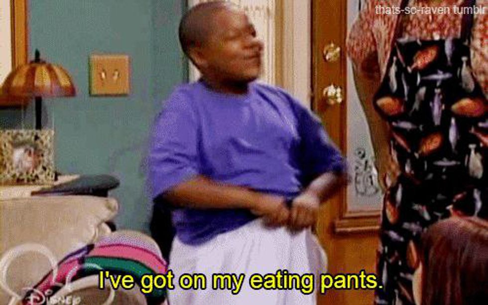 Sometimes sweatpants are even encouraged at the dinner table! No one bats an eye when you open up the button of your pants or declare yourself in a "food coma". That's just Thanksgiving.