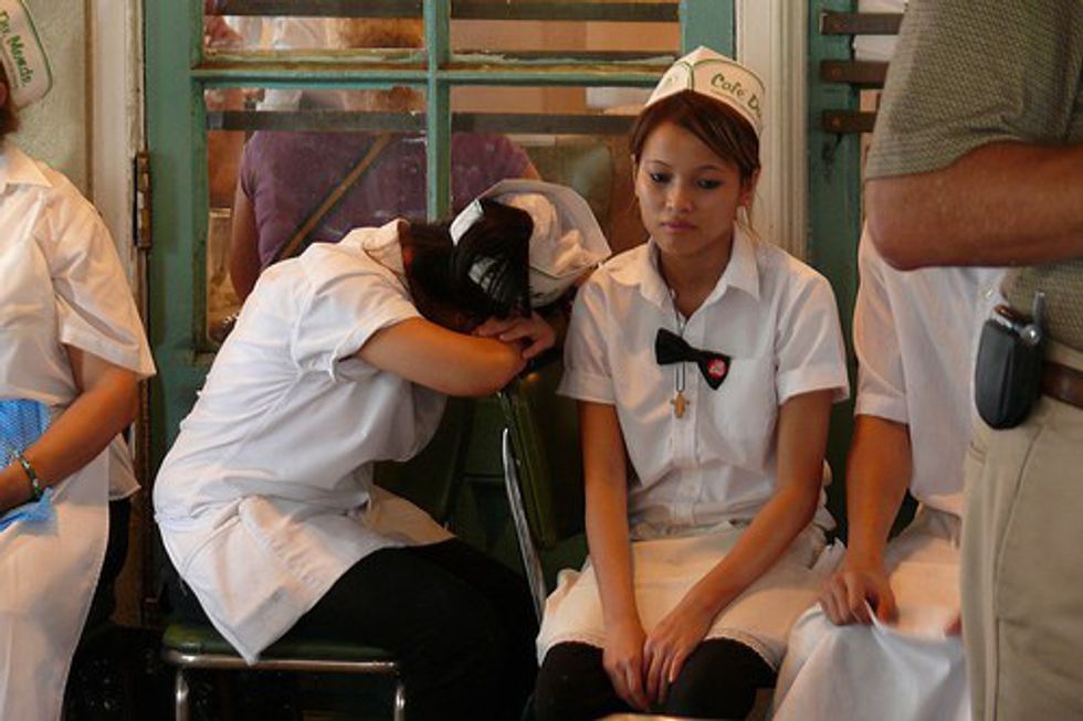 Tons of college students return home or stay near school to get jobs for the summer. This means that they spend numerous hours trying to save up just enough to help them start off the next school year. If you're like me, you're a server and being a server is not easy. Beyond the aching feet, back, joints, and constant running around the restaurant, serving is mentally straining as well. Servers get covered in food, sweat, and sometimes bodily fluids. More often than not, your server is exhausted. Cut them some slack.