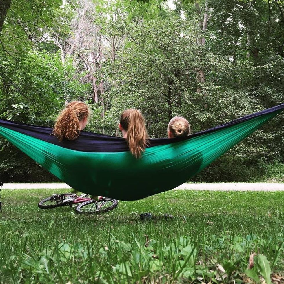 I have a hammock. I adore my hammock. I got one to join the stereotypical freshman scene at my university, becoming one of the many hammocks spread across campus. It was the hipster, yet mainstream, thing to do. And I fell in love. I was in my hammock every minute I possibly could be. I did homework in my hammock, I read, I napped, I invited my friends into my hammock. I did anything and everything in this piece of fabric that I had become over attached to. And now you can too!