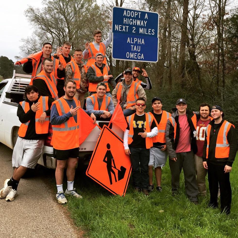 Twice a semester, the brothers of ATO, go out and clean up the highway for 2 miles. This is dedication right there and is such a great way to give back to the Oldest Town in Texas.
