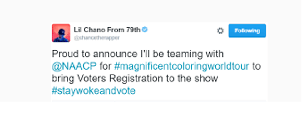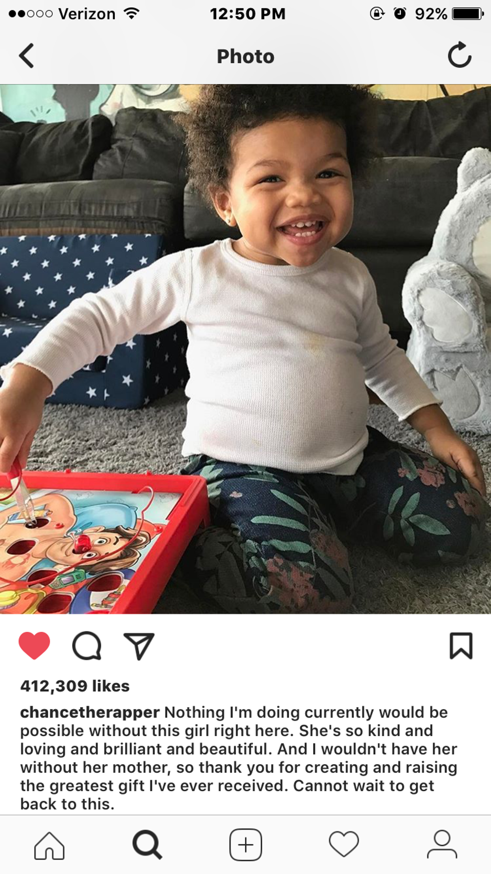 3. His willingness to express himself and what he believes is right- He actively endorsed Hilary Clinton during the election, and continues to advocate for the Black Lives Matter movement.This day in age many celebrities chose not to express their opinion simply because of the backlash it leads to. Whenever something big come up on the news, Chance is almost always one to speak his mind, and I will forever applaud him for that.
