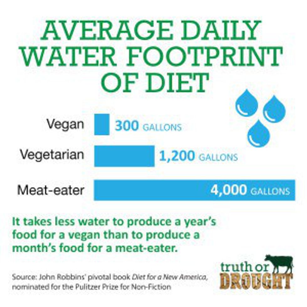5. Vegans use 1/18 of the land and 1/13 of the amount of water used by meat eaters.